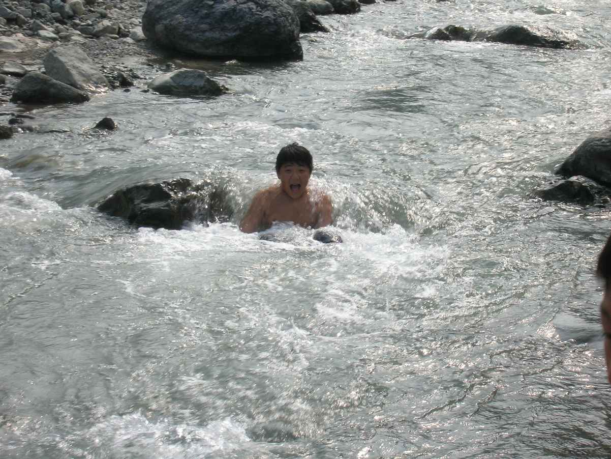 アドキャン4長距離ツーリング一日目は無事、幕営地の富沢のキャンプ場に到着しました。タイヤのパンクのトラブルはありましたが、全員元気です。着いてすぐに裏の渓流で、子供たちは全員遊び始めました。今日は走行距離が短かったので、物足りなかったかも知れません。