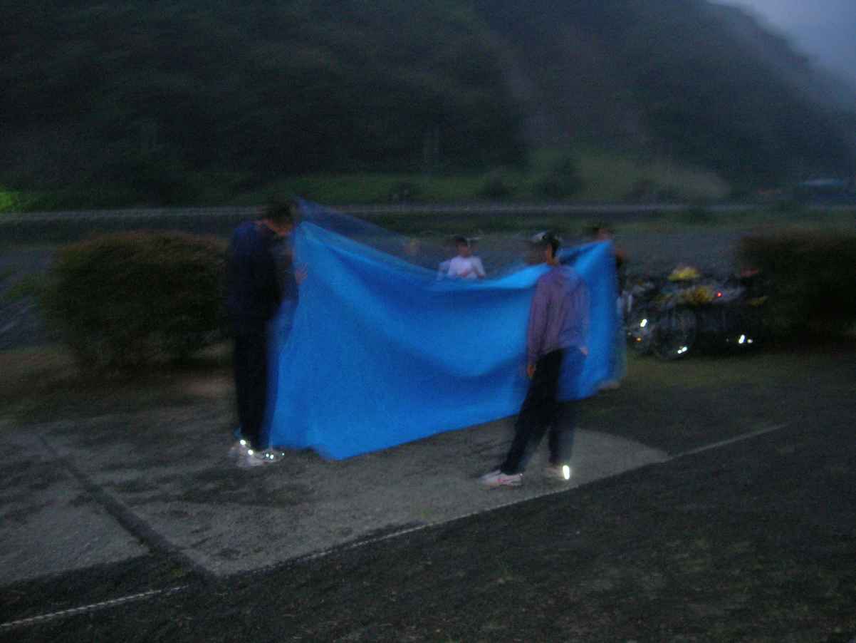 私たちの隣に並んでは2張り設営している子供たちのテントでも、結構みんな目が醒めてしまってなかなか眠れなかったそうで、朝眠そうにしている子が何人もいました。
