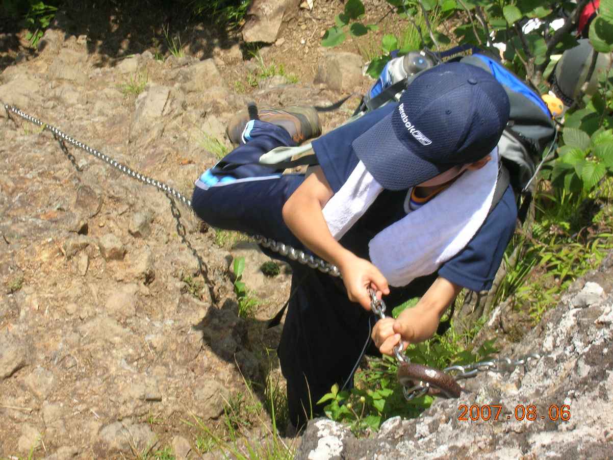 戸隠奥社から最初のピーク八方睨で昼食を採っていたら、やけにうるさい団体が近づいてきました。どうやら大学生の友人同士の団体らしい。しかし、会話の中身は小学生並み。と言ったら、うちの小学生に失礼か。