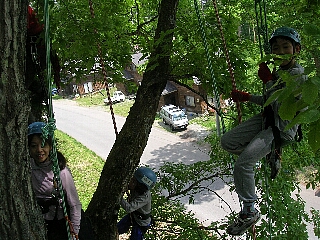 昨日フィールド整備をした信濃町町民の森で、ツリークライミング体験会を実施しました。