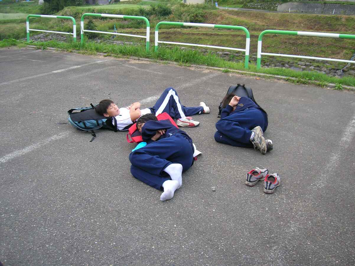 子供たちは、関川を渡る地震滝橋のたもと、水辺公園で、一眠りしようと作戦を立てていました。